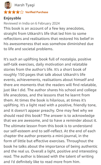 Yeah, yeah! We know there are many self-help books out there. But the author’s storytelling abilities make this book as engaging as fiction! It’s an easy read filled with impactful quotes and anecdotes from Utkarsh's life, making the content relatable and engaging. There will be moments when you will feel, ‘I have faced this too!’